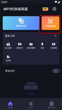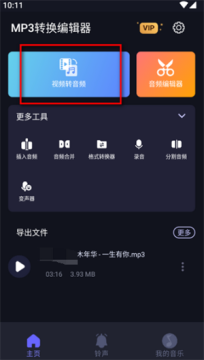 1、在首页中点击视频传音频或者下方的格式转换器,根据音频格式来选择