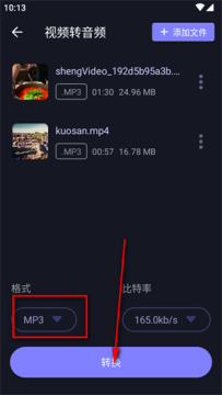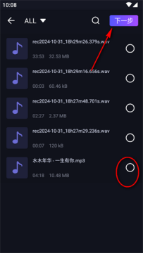 2、打开手机上想要将视频中的音频转换出来的文件,支持一次性选择多个视频