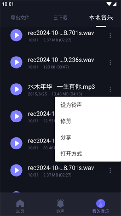 5、点击右侧的向下图标可以设置为铃声或者是剪辑