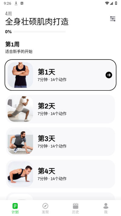 ‌30天训练计划‌:我们为你精心设计了30天的健身计划,每天只需7分钟,无需器械,全身锻炼。高质量锻炼课程,助你更好地塑形,保持健康活力,开启全新生活方式。