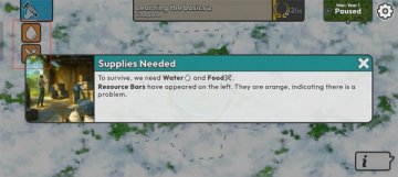 3、生存的基本需求离不开水和食物。当左侧资源条变为橙色时,意味着资源不足或受限,需要立刻采取行动。