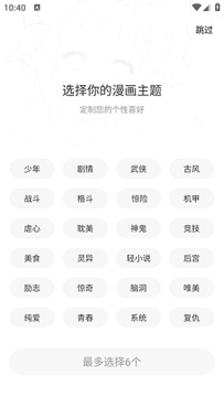 2、然后选择喜欢或者感兴趣的漫画种类,选择之后,点击下一步即可进入。