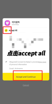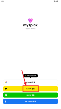 打开my1pick,点击选择一种登录方式,这里以kakao为例