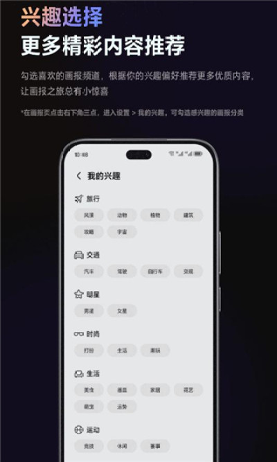 1.兴趣选择中会有更多推荐,勾选喜欢的图片频道,根据兴趣来推荐。
