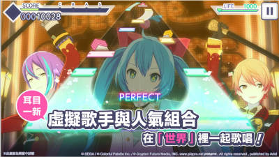 游戏中你将邂逅「人气虚拟歌手」,获得「耳目一新的绝佳音游体验」,收听「丰富的人气VOCALOID曲库」,享受「视听一体的感官盛宴」,在「虚拟LIVE」中结识朋友,还有更多惊喜在等你发掘。