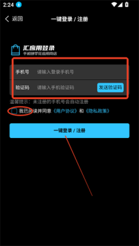 3、输入手机号以及获取得到的验证码,直接可以一键完成注册登录