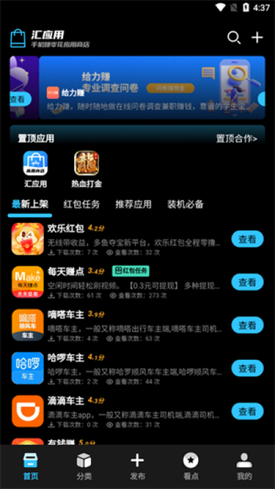 汇应用商店App,一款极具实用性的应用商店,它汇聚了海量的安卓软件资源,涵盖了网赚、影音、小说、漫画等多个领域。该应用的下载速度极快,让用户无需长时间等待。此外,它还支持多种应用管理功能,包括安装、更新、卸载以及转移等,方便用户对手机应用进行全方位的管理。对于需要下载和管理安卓应用的用户来说,汇应用商店App无疑是一个不可多得的好帮手。