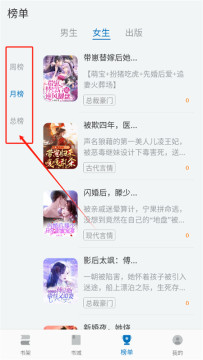 5、点击榜单,可以查看每周、每月的小说人气排行榜单