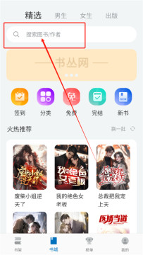 2、在书城页面,点击搜索框,输入图书/作者可以快速找到想看的小说