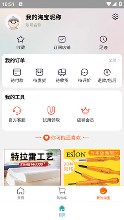 2、与手机淘宝账号实时同步,确保用户信息、购物车、订单等数据的一致性。