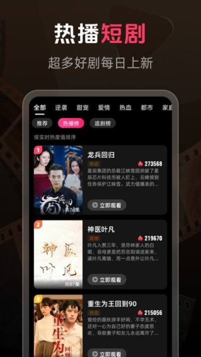 免费短剧汇看宝app是一款安卓手机免费看短剧的平台,软件中有着海量的优质剧集可以观看,高能剧情精彩不断,不同的短剧类型满足你的观看所需,对软件感兴趣的话不妨点击下载试试!