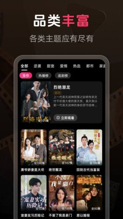 2、有多种类型的短剧,包括像爱情、戏剧、悬疑等,满足不同的口味。