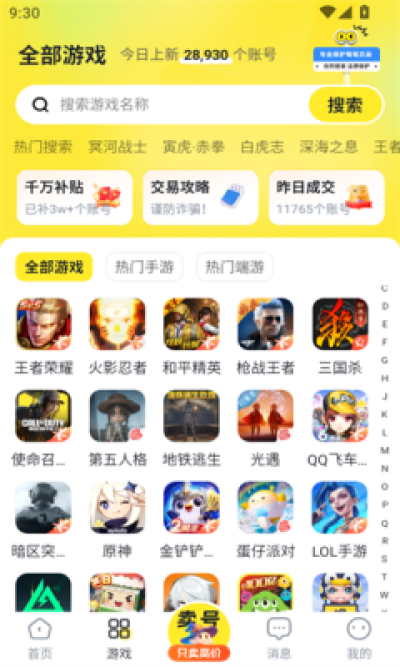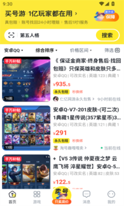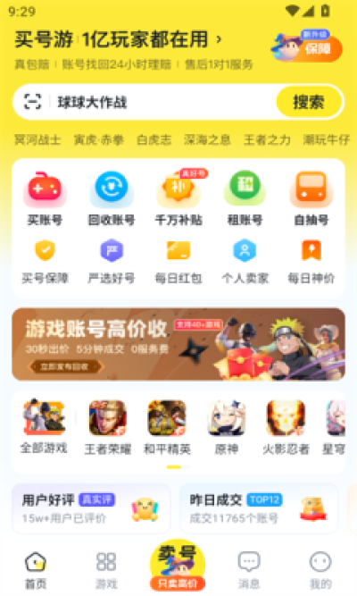 买号游app是一款安卓手机专业游戏账号交易平台,广大游戏玩家首选游戏交易平台,包含不同类型的游戏内容,用户还可以筛选自己感兴趣的账号,官方正规平台买号更安全,对软件感兴趣的话不妨点击下载试试!