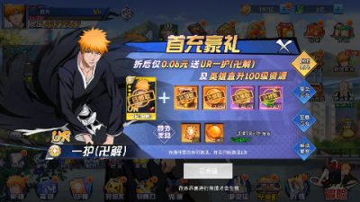 开服福利,可在空座町可在限时活动“新服限购”活动中购买新服专属助力礼包,超高性价比,超低的折扣,只为让你畅游死神宇宙!!!