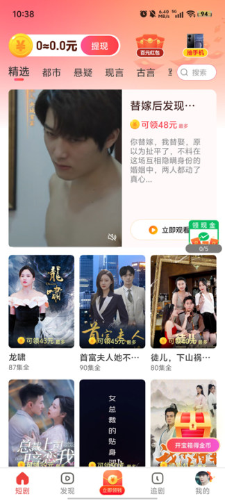 茶香剧场app是一款安卓手机免费看短剧的软件,软件中有着海量的实用功能等你体验,用户可以在线看短剧轻松赚零花钱,平台还有超多福利活动等你参与,对软件感兴趣的话不妨点击下载试试!