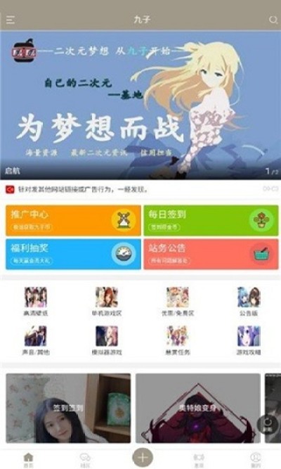 九子社区(又称九子宝盒)是一款资源丰富的acg游戏社区,这里每天为你更新动漫游戏资源,各种各样的游戏类型等你下载。资源完全免费,下载注册即可加入游戏社区,每天都会有新的帖子为你带来第一手游戏资讯,还有各种美图壁纸、音频视频资源和绘画素材,全新的acg文化社区,在这里找到属于你的乐趣。