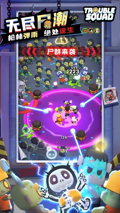 在这个游戏中,你将扮演一名勇敢的幸存者,在丧尸横行的世界中对抗危机并与层出不穷的丧尸及强大的BOSS展开激烈的战斗。当你被丧尸包围时,你可以召唤一群不仅可爱而且强力的伙伴,组建一支精英小队,每位队员都拥有独特的技能和能力,你需要巧妙地利用和指挥他们,一起拼劲全力消灭阻挡在你们面前的丧尸,争取生存的每一分每一秒。