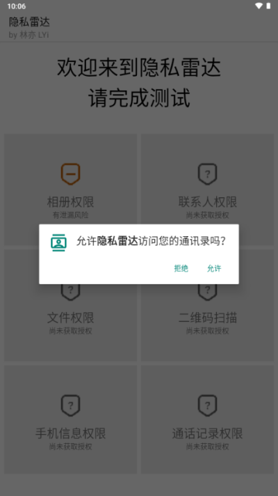 1、在本站下载中下载隐私雷达app,进入软件后我们需要给予相关的权限;