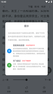 4、听书功能需要用户安装TTS,或者可以直接使用软件提供的离线听书功能。