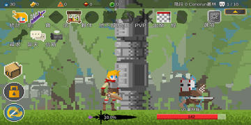 趣味的放置点击游戏,没有什么华丽的操作,不断的点击攻击即可,玩家可以解锁木剑、铁剑等武器,可以强化属性,与众多的怪物战斗。