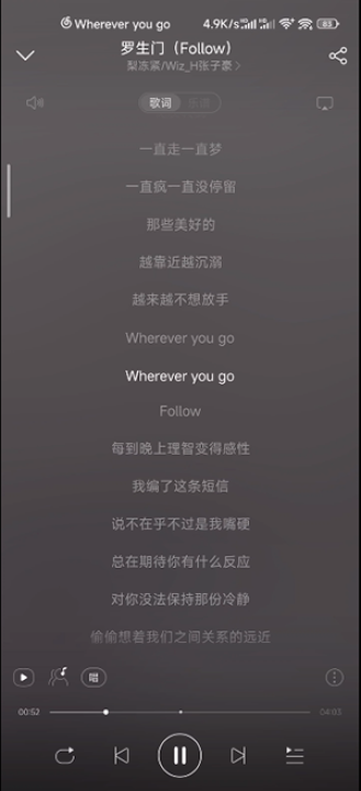 3、再打开音乐app就可以实现状态栏歌词显示了。