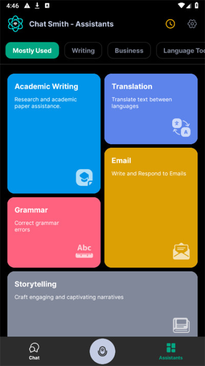 AI Chatbot助手覆盖了多个领域,包括业务、内容创作、写作、面试准备以及信息查询等,为用户提供了广泛的选择。