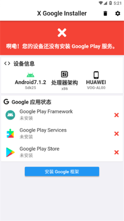 一键安装:用户只需轻按一下按钮,就可以自动完成Google服务框架的安装,无需手动配置,大大节省了时间。