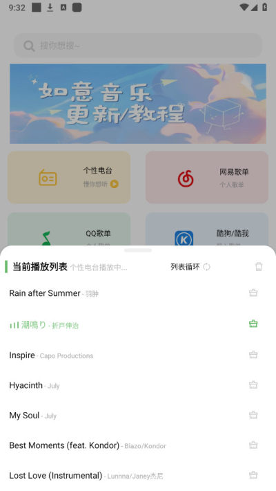 4、绑定之后就能在如意音乐听到你的歌单了
