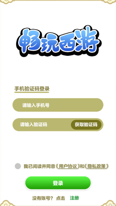 2、输入手机号和验证码,同意用户协议和隐私政策即可快速登录