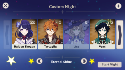 《雷电五夜惊魂》 (Five Nights at Raiden's) 是一个粉丝项目,它结合了《原神》宇宙和《弗雷迪五夜惊魂》的机制。你必须生存五个晚上,在一个神秘的地点与 Shogun Raiden、Tartaglia、Lisa 和 Venti 等角色战斗直到凌晨 6 点。你有门、有灯、有摄像头的平板电脑,但最重要的是能源。明智地使用它来生存。如果你犯了一个错误,可怕的意外就会很快到来。凌晨 6 点之后,新的挑战在地下深处等着您。