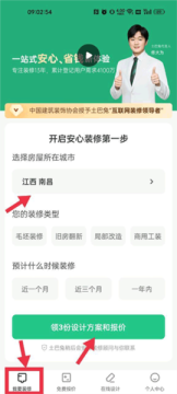 点击左下角我要装修,在选择所在城市及对应选项就可以免费领取装修设计图啦。