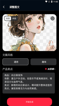 用户只需上传商品图片,红薯助手即可生成高质量的图文内容,适用于产品推荐或测评等场景,显著提升创作效率。