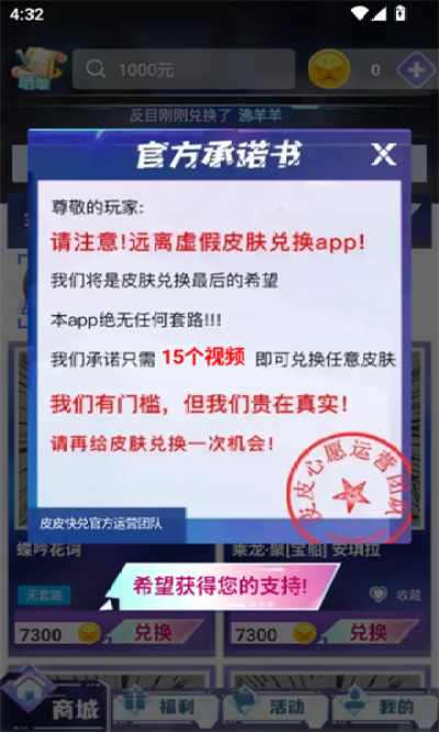 4、确保皮肤来自正规来源,避免账户的安全风险,保护权益。