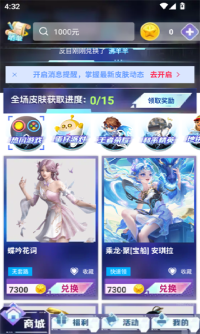 2、免费体验多种类型的皮肤,不需要花钱,用户就可以获取游戏皮肤的体验。