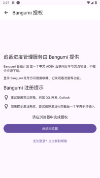 Bangumi:这是一个由 Sai 发起的 ACG 分享与交流项目,主要用于管理和追踪用户的追番进度。虽然 Bangumi 不提供播放功能,但 Ani 依赖其进行进度管理等功能。对于无法注册 Bangumi 的用户,建议使用能正常接收邮件的邮箱尝试注册 Bangumi 电脑版。
