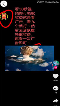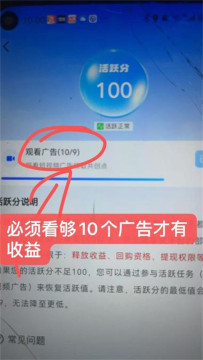 2、通过看广告赚钱,必须看够10个广告才有收益