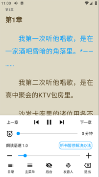 4、阅读界面,点击一下屏幕可以唤出菜单,可以自定义设置。