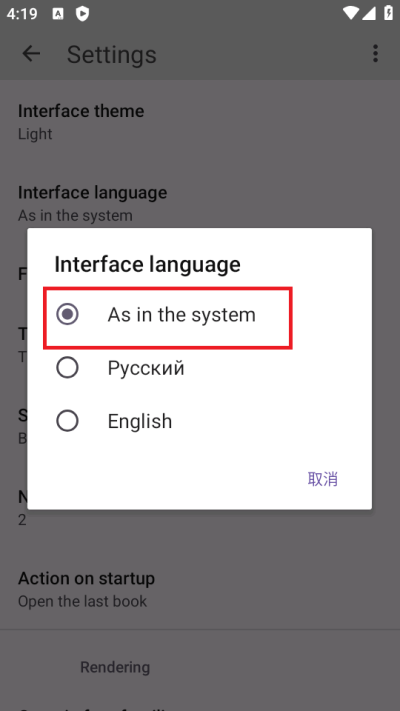 5.勾选【As in the system】,就可以跟随你的系统语言。