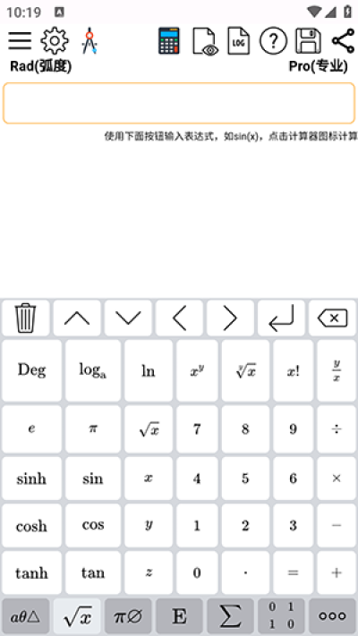 1、首先我们将mathfuns的计算模式切换为Pro专业模式,然后就可以在下方看到各类导数的符号。