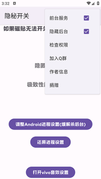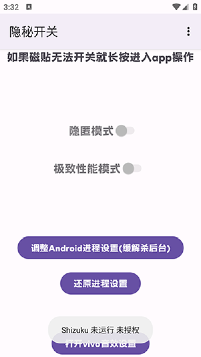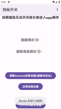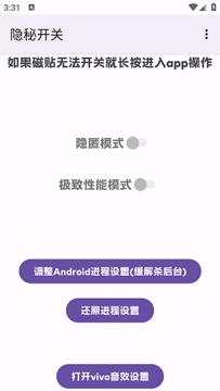 隐秘开关,一款专为手机游戏打造的“隐藏模式”启动神器。它只需一键,便能迅速开启隐藏功能或极限模式,让手机性能瞬间飙升,确保游戏运行流畅无阻。其界面设计简洁明了,毫无冗余,更无恼人广告打扰,让你在设置过程中尽享轻松便捷。专注于游戏体验,隐秘开关无疑是游戏爱好者的理想之选。