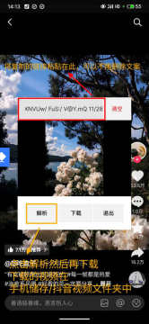 2、点击解析以后在下载,下载的视频在手机储存/抖音视频的文件夹中。
