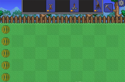 1、在泰拉瑞亚的地图上,玩家用植物打败入侵的僵尸。