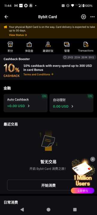 bybit推出的一张U卡,可以直接消费数字货币,的mastercard卡,可以在全球包9000多家商户包括中国消费使用,提供一张虚拟卡和一张实物卡,可以绑定在Apple Pay 或 Google Pay 手机中便 用,新注册的用户可以返现 10%, 新用户最多可以返 300美金,