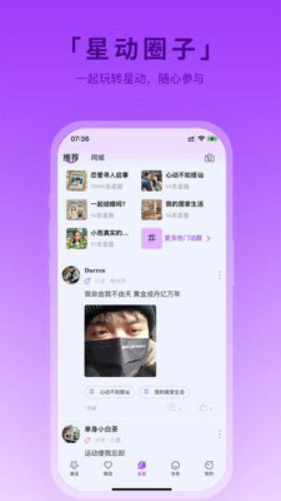 一个开放的社交广场,在这里你可以分享更多真实有趣的生活,探索不同领域的兴趣,发现更多身边的人,在广场,无论您身在何处,无论他在天涯海角,您都可以随心跟ta说hi。
