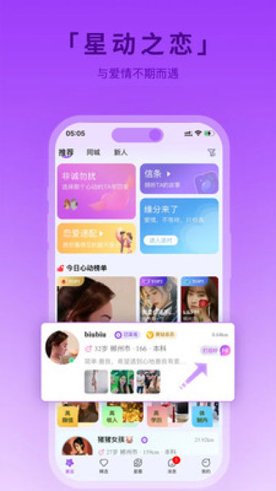 星动之恋app是一款可以在线聊天互动的软件,用户可以随时随地在线结交更多有趣的朋友,和频率相同的人聊天,同频同层同城轻松社交,真实有效高效脱单平台!对软件感兴趣的话不妨点击下载试试!