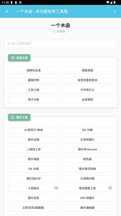 海蓝云库app手机版是一款集成了丰富工具的免费工具箱软件,软件涵盖了工作生活等各种方面的工具,按照类别进行整齐划分,用户可以一目了然地找到所需的功能,用户可以直接在首页点击选择所需功能,也可以通过搜索框快速定位特定工具,给大家最好一站式解决问题的手段!
