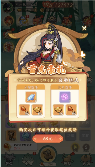 挂出个大侠0.05折免单福利版是一款武侠风格的放置挂机类手游,游戏里玩家将扮演一名初出茅庐的武侠,通过不断的修炼和冒险,逐渐成长为一代大侠。游戏以放置挂机为核心玩法,让玩家在轻松愉快的氛围中体验武侠世界的魅力!