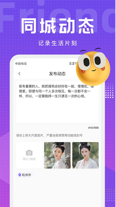 - 高效率交友:优先推荐附近高品质、高颜值用户,不用左滑右滑了,喜欢TA就直接开聊。