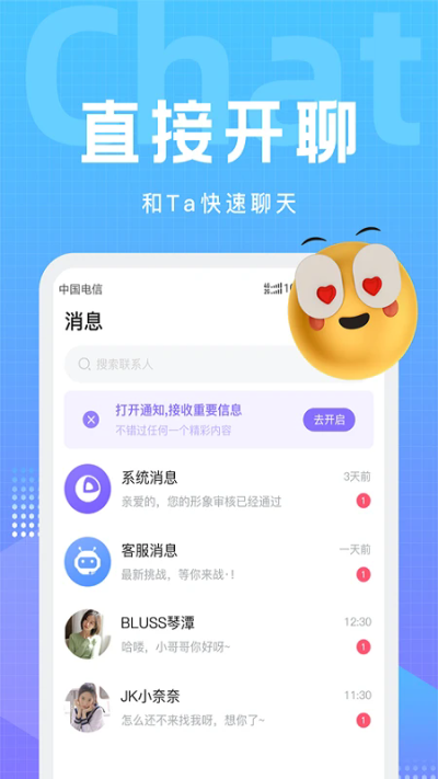 1、消息提醒,重要的消息会及时的通知用户们,帮助大家接收对方的信息。