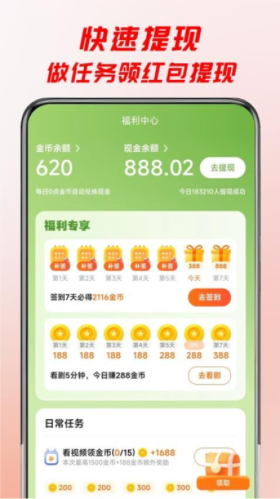 【金币福利】签到观看赚金币,提现秒到账,看越多赚越多